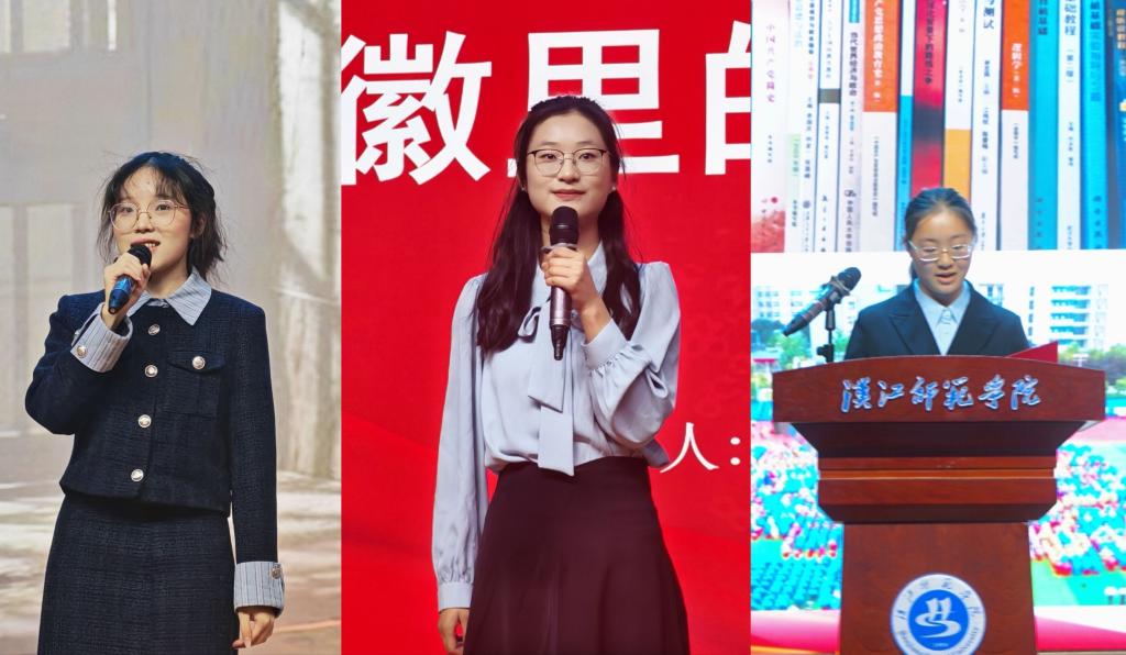 活动在马院学生合唱《南泥湾》的嘹亮歌声中拉开序幕。随后,“赓续红色血脉”“代言美丽家乡”“书写青春故事”三大篇章依次展开。在“赓续红色血脉”篇章,佛台小学“红话筒”故事团12名小朋友以童声讲述《真理的味道》《写给父母的明令片》《法兰西的红色传奇》等红色故事,以稚嫩嗓音还原革命岁月的热血与坚守。马院谢梅、张宸两名同学讲述了杨献珍、燕若痴等早期校友求学经历和个人事迹,传递信仰的力量,激励我辈青年传承精神、奋发有为。在“代言美丽家乡”篇章,“红话筒”故事团10名学生先后登台,以“1分钟”为限,展示家乡美、诉说家乡情。在“书写青春故事”篇章,马院国家奖学金获得者代表、艺术学院退伍大学生集体先后带来个人励志故事宣讲和军体拳表演,生动展现新时代青年的使命担当。
