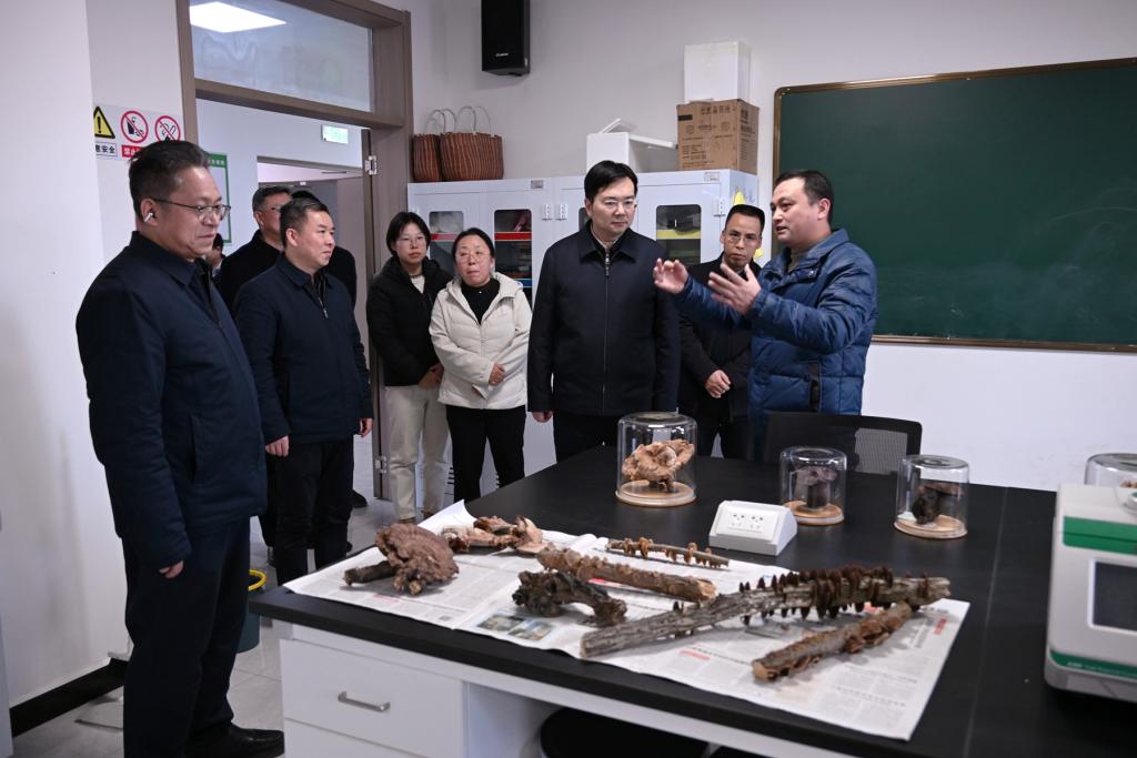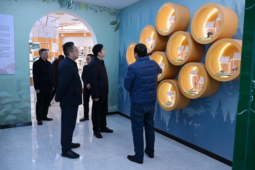 在资源库内,张澍仔细察看菌种保藏、标本陈列及科研实验现场,询问资源收集与开发利用情况,并对资源库的建设成效给予肯定。他指出,要围绕十堰建设鄂西区域性中心城市的战略定位,充分发挥高校科技与人才优势。在优质菌种选育、全产业链技术攻关等方面发挥积极作用,探索菌物资源在生态康养等新兴领域的应用潜力,推动“绿水青山”向“金山银山”的高效转化。