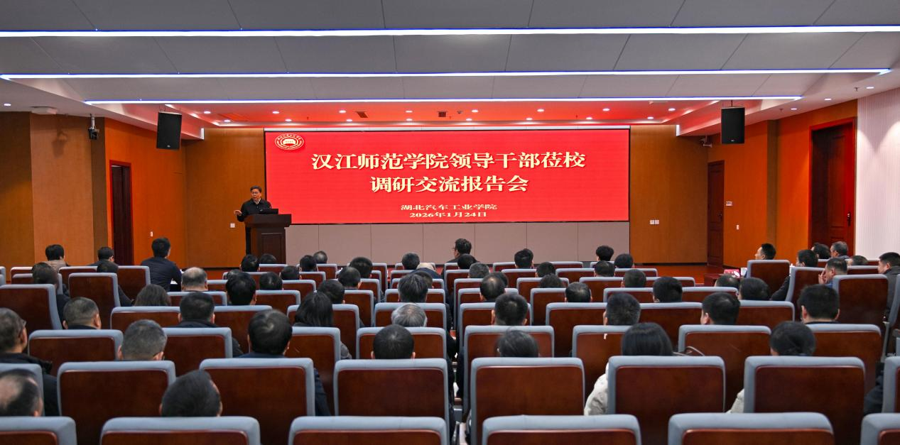 2026年1月24日,学校组织全体中层正职及部分中层副职近百人赴湖北汽车工业学院开展专题学习交流活动。活动分为实地参观考察、集中报告学习和分组对口研讨三个环节。全体校领导参加活动并带队开展分组交流研讨。