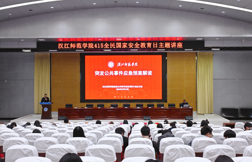 在第十一个“4·15”全民国家安全教育日来临之际,为深入学习贯彻总体国家安全观,切实提升全校师生的国家安全意识与风险防范能力,4月15日下午,学校联合十堰市国安局、茅箭区委政法委、茅箭区公安局在学术报告厅开展国家安全教育系列活动。校党委常委、宣传部部长梁仕新出席,全校500余名师生代表参加。