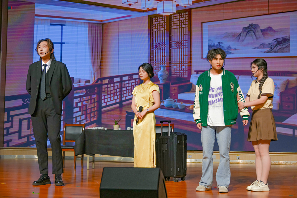 节目展演以阅读为魂、艺术为媒,六大节目精彩纷呈、意蕴深远:学校图书馆馆员诗朗诵《书香汉师之芳华》,颂赞书香岁月,传递育人初心;十堰市图书馆配音秀《身临其境小剧场》,以声绎典,再现文化经典魅力;文学院话剧《雷雨》:新编演绎传世名作,让经典与时代对话;国际教育学院留学生朗诵《你是人间的四月天》,跨文化诵咏,传递温情诗意;外国语学院情景剧《家书里的初心》,回溯革命年代,厚植家国情怀;马克思主义学院诗朗诵《献给信仰的青春答卷》,诵读青春誓言,坚定信仰力量。