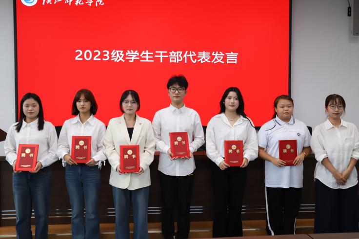 2023级学生干部代表刘芳琦结合自身工作经历,分享了在组织协调、服务同学过程中的收获与感悟;2024级学生干部代表尹明月则围绕未来工作规划,表达了接力担当、服务学院发展的坚定决心。