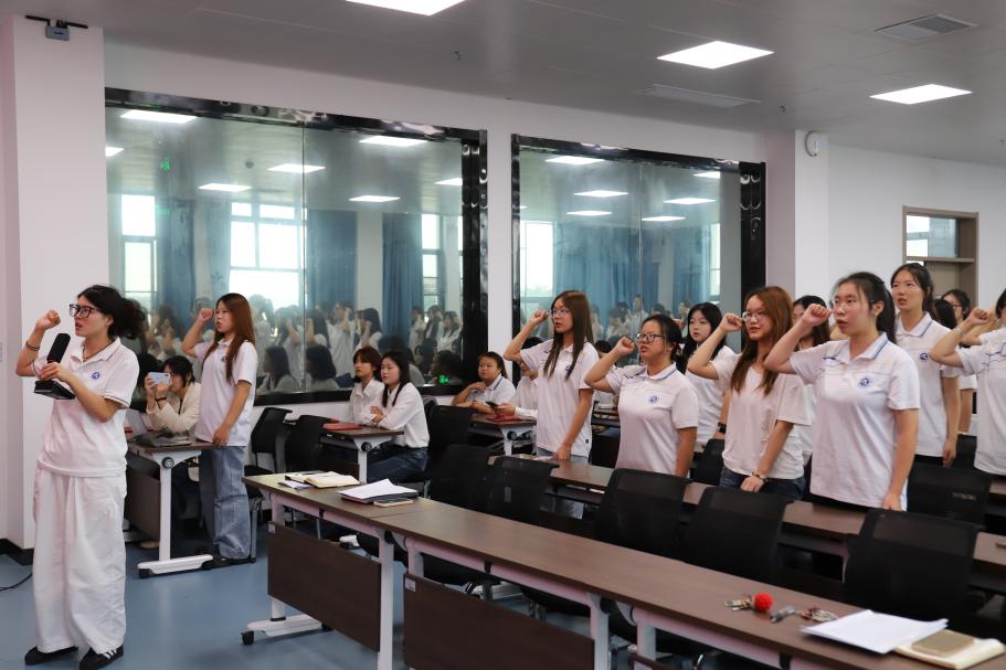 谭晓英老师带领新一届学生干部庄严宣誓。