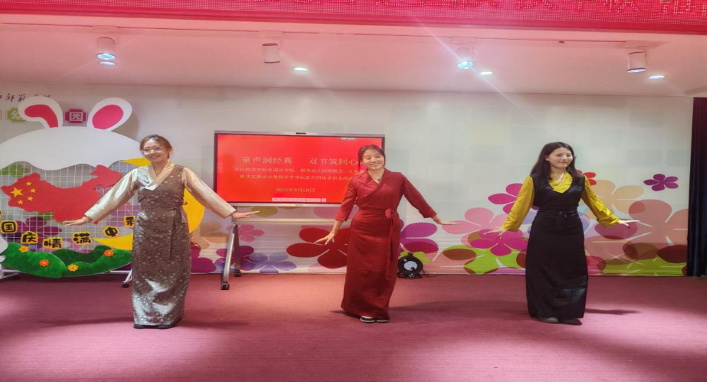 金秋送爽,丹桂飘香。在国庆与中秋双节来临之际,为加大国家通用语言文字推广力度,促进铸牢中华民族共同体意识教育,9月28日,外国语学院分团委、学生党支部联合桐华幼儿园,共同举办“童声传经典,双节筑同心”主题实践活动。校党委常委、宣传部部长梁仕新,外国语学院分党委书记王官华,桐华幼儿园园长汤清芬及双方师生代表200余人欢聚一堂,共庆佳节。