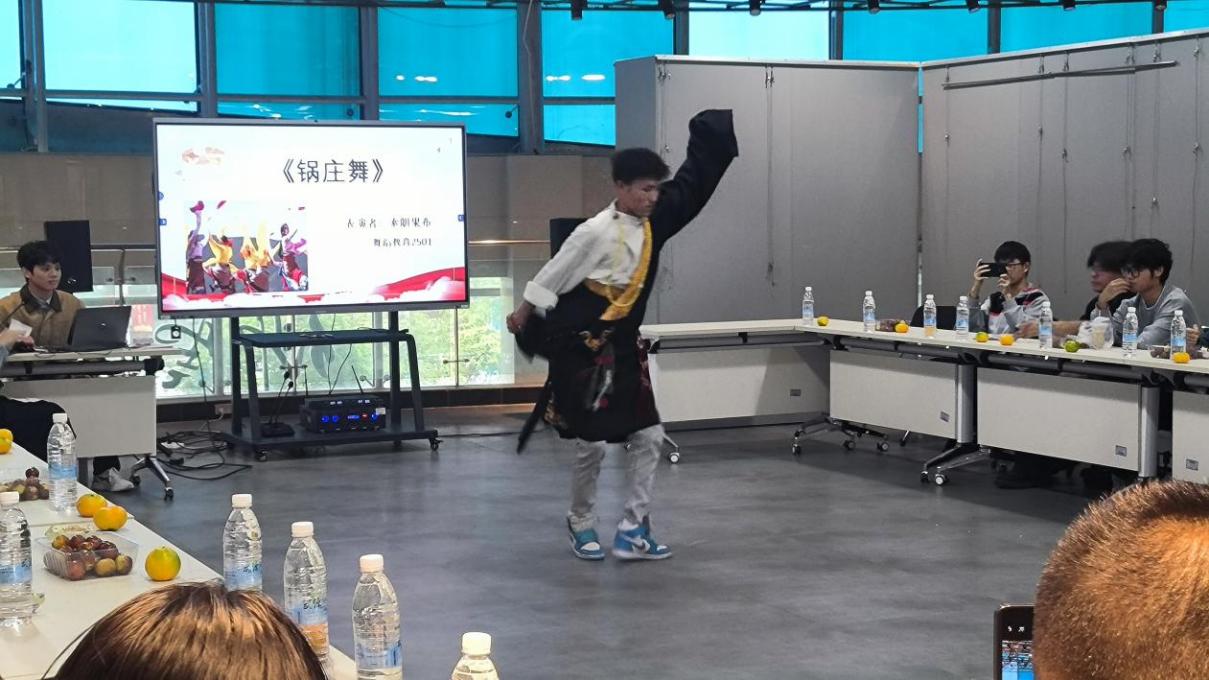师生们齐聚美术馆二楼,共同开启双节茶话会。现场表演古典与现代交织,舞乐与歌声相融,亮点纷呈。