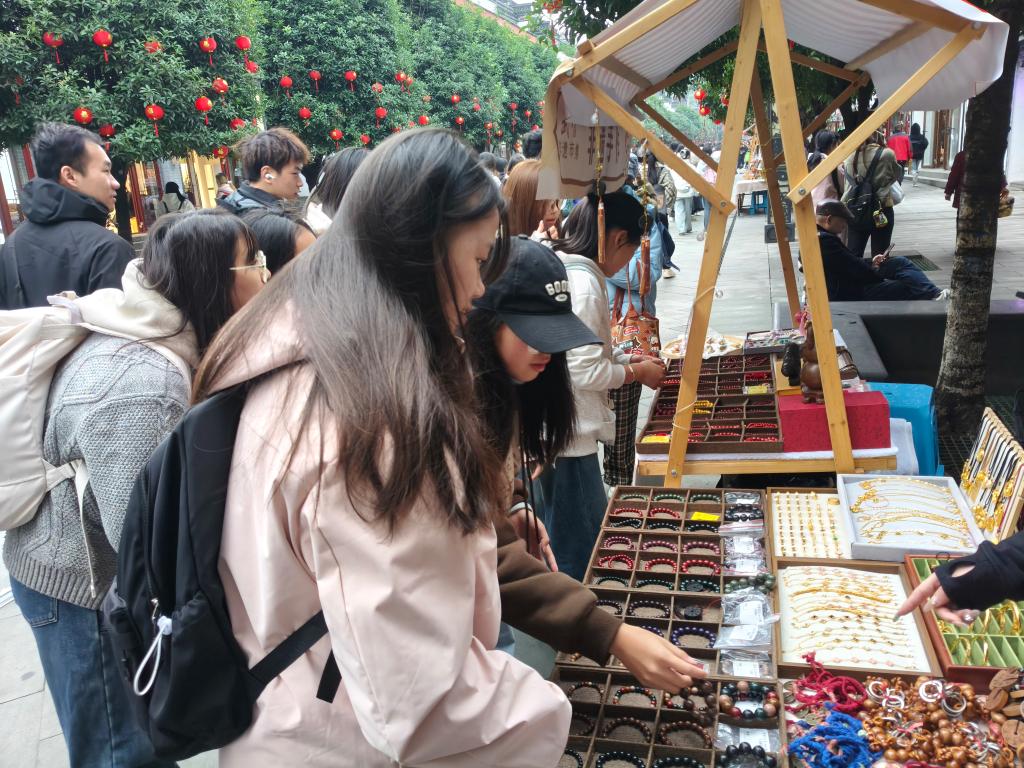 在这片浸润着文化底蕴的街区,学子们结合专业特色,在孙宇阳老师的带领下开启沉浸式非遗文化探索。他们追溯木版年画、太极盘扣等非遗技艺的历史脉络,在刻版与纹样间探寻岁月留下的文化密码;他们调研非遗美食、文创展位的文旅运营模式,思考如何让非遗业态更受游客青睐;他们探讨非遗保护的管理与推广路径,向传承人请教技艺传承的现实难题。这一系列探索,正与学院深耕的武当文化研究紧密呼应,武当非遗作为武当文化重要组成部分,其技艺、民俗、艺术等元素在研学中被师生逐一挖掘,进一步夯实了学院武当文化研究的实践根基。