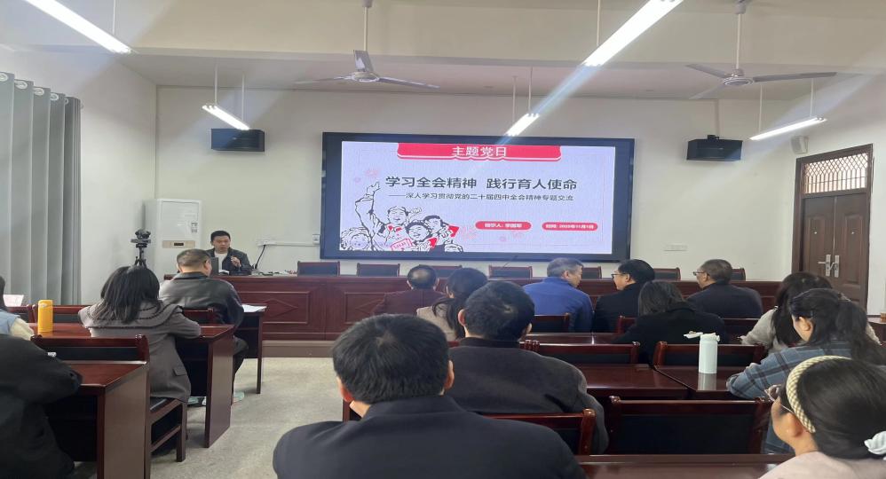 接着马院教师李国军以“学习全会精神,践行育人使命”为题,作了深入学习贯彻党的二十届四中全会精神的专题交流发言。
