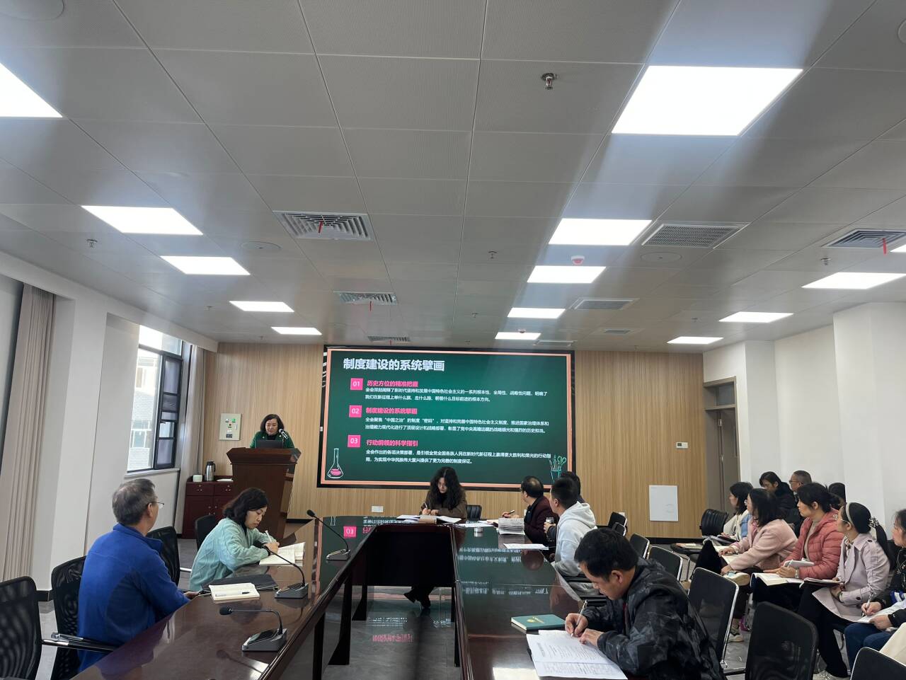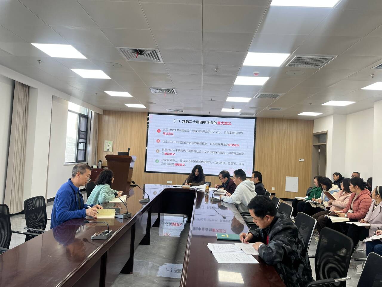 10月30日下午,马克思主义学院全体教职工在求真楼604开展第九周政治理论学习。此次学习紧紧围绕学习领会党的二十届四中全会精神展开。
