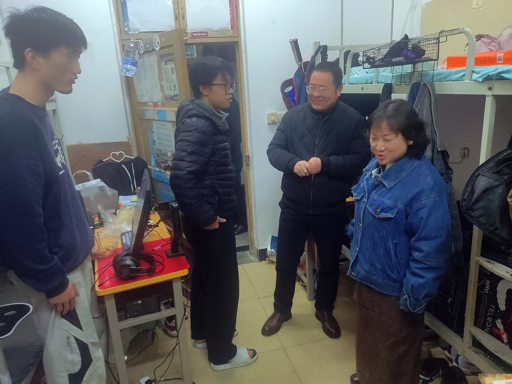 12月3日晚,体育学院分党委书记、春雪楼功能型党总支副书记陈露,学生工作处副处长、春雪楼功能型党总支委员张香武等走访春雪楼部分学生宿舍。春雪楼功能型党总支三、四、五、六支部书记叶翼、金超、赵进学、闫凯参加走访。