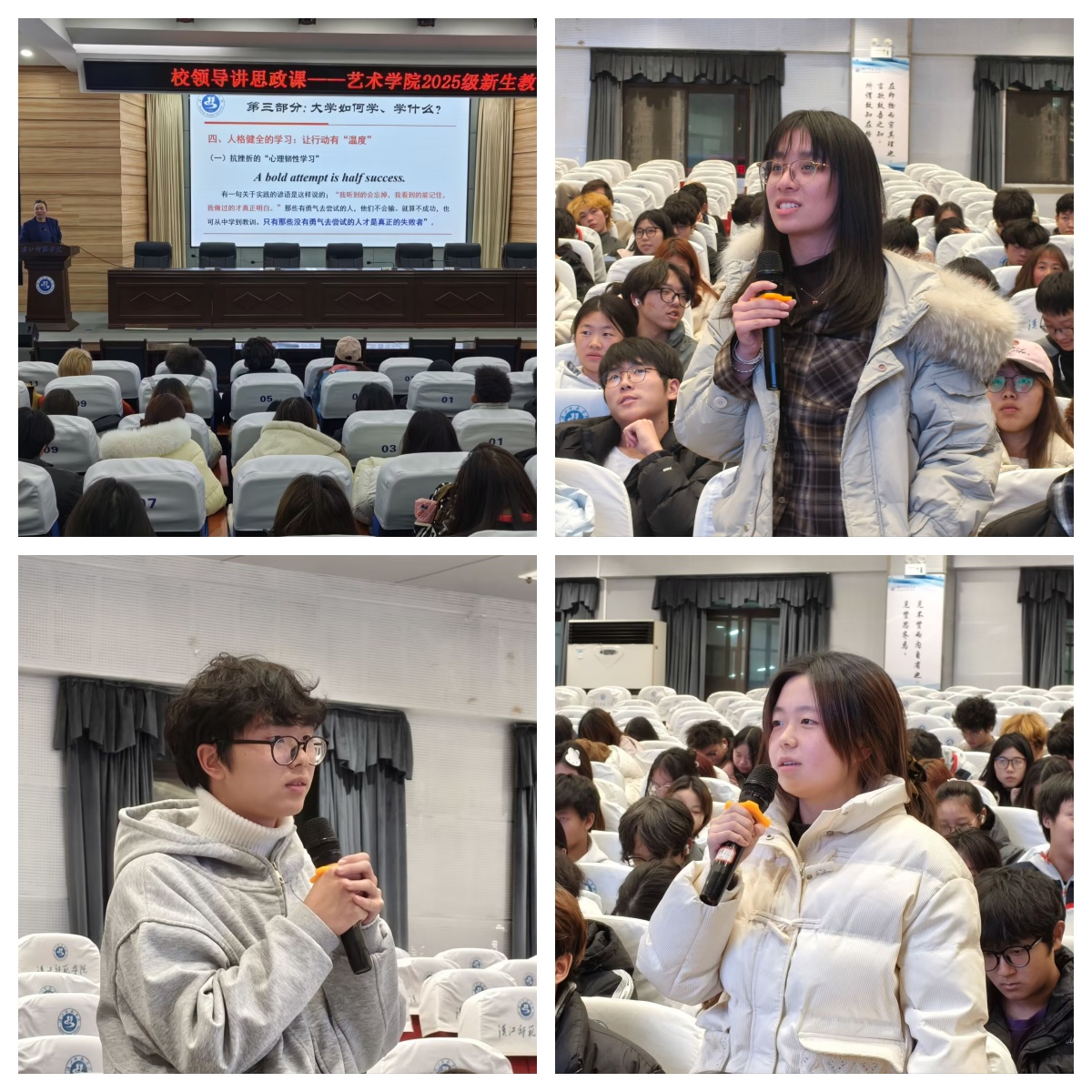 “进入大学后有没有认真思考下一个人生目标?我们应该怎样度过大学时光?”校党委副书记周明华和2025级学生亲切互动,气氛热烈。近日,周明华分别为马克思主义学院、化学与环境工程学院、艺术学院800余名2025级学生讲思政课,激励学生树立远大目标、规划大学生活、付诸具体实践,用行动创造精彩人生。