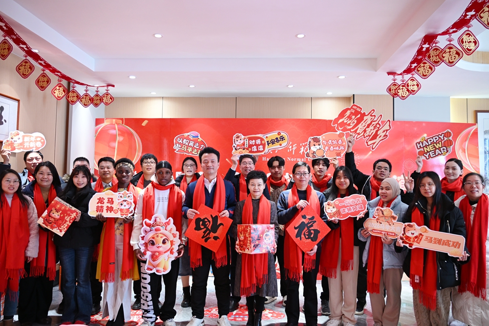 腊梅吐蕊,年意正浓。为让寒假留校学子感受家的温暖与新春的喜悦,2026年2月10日农历小年中午,学校在“一站式”学生社区稻香园食堂举办“骏马踏春”春节留校学生团年联谊活动。校党委常委、副校长吴冰,党委常委、副校长、“一站式”学生社区功能型党委书记吴红斌,党委常委、统战部部长王进,相关职能部门、二级学院教师代表与中外留校学生欢聚一堂,包饺子、聊年俗、迎新春。