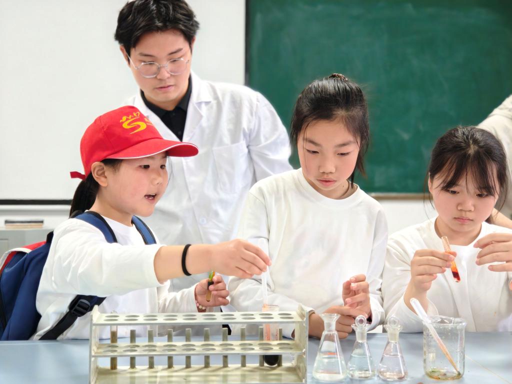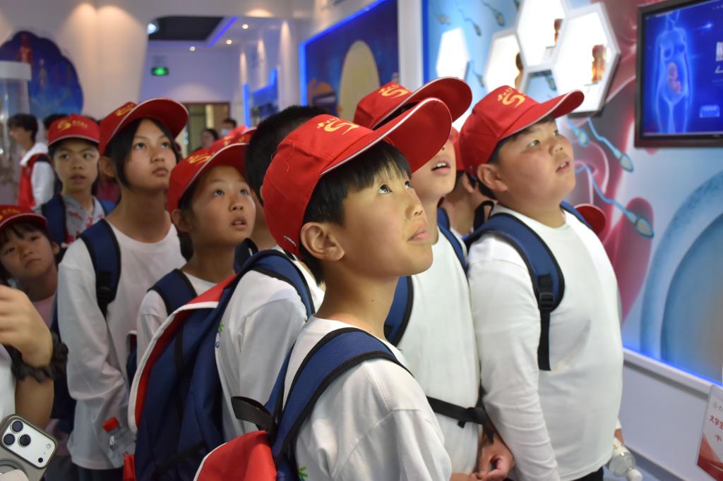 下午,在汉江师范学院,孩子们依次参观了生物博物馆、无机化学实验室和物理演示实验室。在生物博物馆,他们通过丹江口库区动植物标本,看到了“一泓清水”背后的生物多样性;在无机化学实验室,孩子们亲手操作了简单的水质检测小实验,观察不同水样的颜色变化;在物理演示实验室,他们体验了力学和光学现象,感受自然规律的奇妙。随后,在湖北医药学院生命科学馆,孩子们现场了解人体奥秘,认识到生命的珍贵。